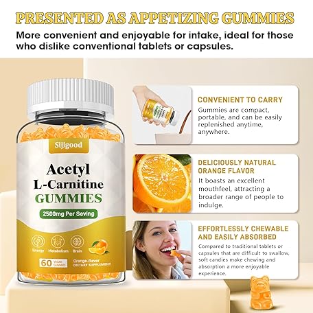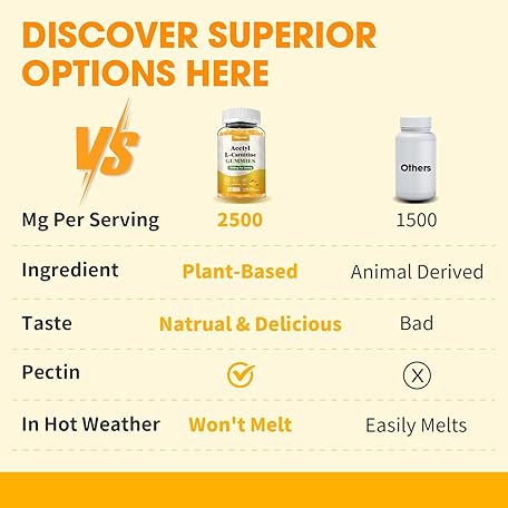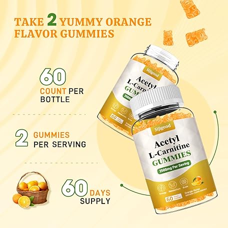 2 Pack Acetyl L-Carnitine Supplement, Natural Nutrition Supplement for Boost Energy, Immunity, Vegan, Orange Flavor, 120 Count