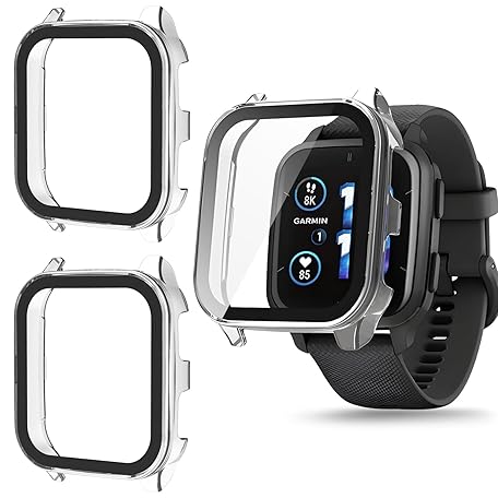 2 Pack for Garmin Venu Sq 2 / Sq 2 Music Screen Protector Case [Full Coverage], Hard PC Bumper All-Around Protective Accessories for Garmin Venu Sq 2 Built-in Tempered Glass Film