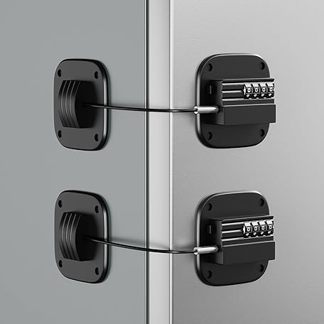 Thông tin sản phẩm 2 Pack Fridge Lock with Combination, No Key Required, Upgrade Refrigerator Lock with Adhesive and Screws, Freezer Cabinet Pantry Drawer Latch to Keep Door Closed, for Kids Adults Cats & Dogs, Black