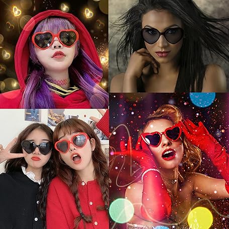 Thông tin sản phẩm 2 Pack Heart Shaped Sunglasses, Heart Effect Sunglasses for Rave Party, Valentines Day Love Gift