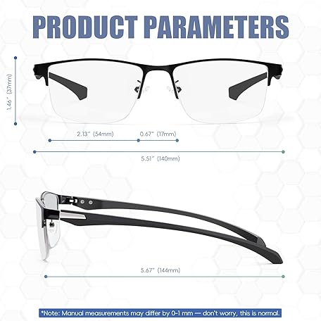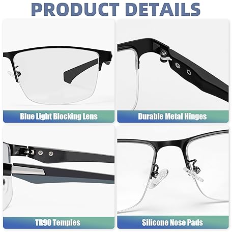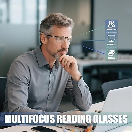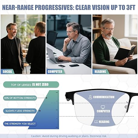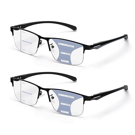 2 Pack Men's Progressive Multifocal Reading Glasses,Half Rim Metal Frame TR90 Temples Blue Light Blocking Anti Eyestrain Multifocus Computer Readers,2.5x
