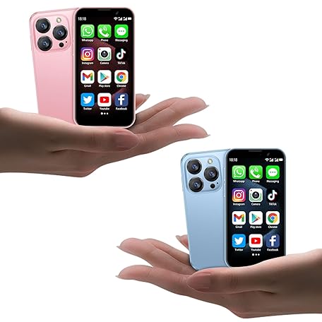 2-Pack Mini Phones (Blue & Pink) | 16% Off Color Combo | World’s Smallest Unlocked Android Smartphones for Kids, Students & Travel | Dual SIM, Face ID, Compact Design