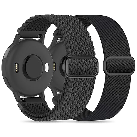2 Pack Nylon Bands Compatible With Garmin Vivoactive 6/5/3/Forerunner 570 42mm/165/55/645/245 Music Watch Band, 20mm Soft Elastic Nylon Bands Replacement for Garmin Venu/Venu Sq/Venu Sq 2 Women Men