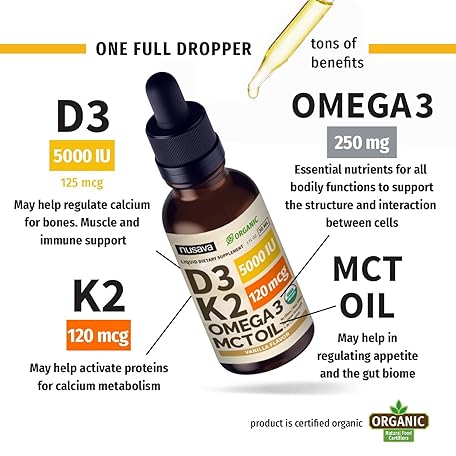 Thương hiệu NUSAVA là cái tên nổi tiếng được rất nhiều khách hàng trên thế giới chọn lựa. Với kiểu dáng đẹp mắt, sang trọng, sản phẩm (2 Pack) Organic Vitamin D3 K2 Drops with MCT Oil Omega 3, 5000 IU - Maximum Strength Vitamin D Liquid, No Fillers, Non-GMO Liquid D3 for Faster Absorption and Immune Support (Vanilla, 1 Fl OZ x 2) là sự lựa chọn hoàn hảo nếu bạn đang tìm mua một món cho riêng mình.