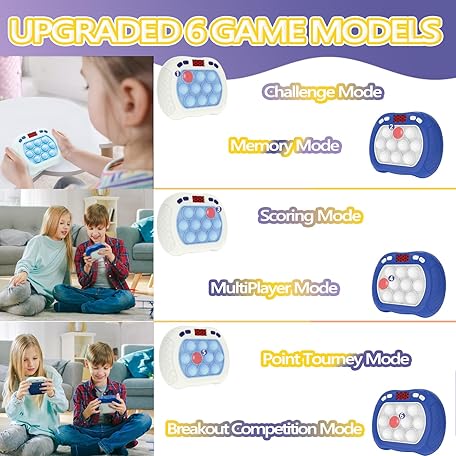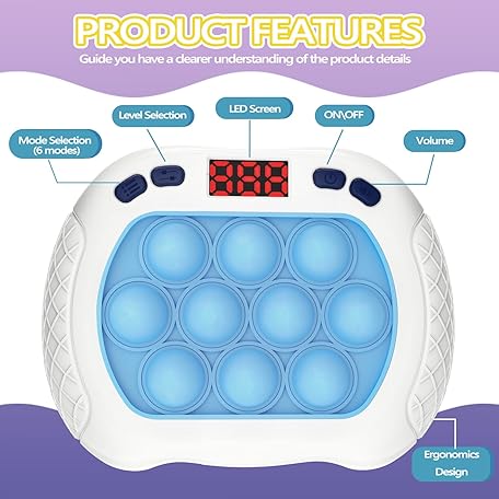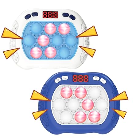 Thông tin sản phẩm 2 Pack Quick Push Pop Game for Kids, Handheld Fidget Toy With LED Screen Light Up, Electric Pop Controller, Fast Push Bubble Sensory Toy, White & Blue