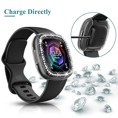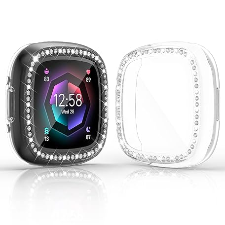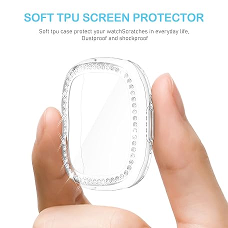 Thông tin sản phẩm 2-Pack RICHONE Compatible with Fitbit Versa 4 & Sense 2 (2022) Screen Protector Case, Bling Diamonds Cover Soft TPU Bumper Smartwatch Accessories(Clear x 2, Versa 4 & Sense 2 Watch)