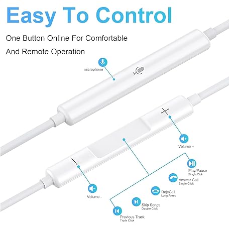 Thông tin sản phẩm 2 Pack-USB C Headphones Wired for iPhone 16/15, Type C Earphones with Microphone & Remote Noise Cancelling Earbuds for iPhone 15 Pro Max, iPad, Galaxy S23/S22/S21/S20/Ultra Note 10/20, Pixel 7/6/5/4