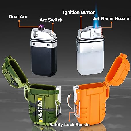 • 2 Pack Waterproof Outdoor Lighter Plasma Windproof Torch Lighters Dual Arc Lighters Electric USB Rechargeable Lighter Flameless EDC Camping Adventure Survival Tactical Gear