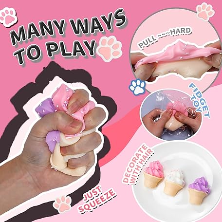 • 2 Pcs Taba Squishy Licious Ice Cream Toy Handmade, Cute Kawaii FuFu Squishies, Sticky Squeeze Pinch Fmily, Food Squeeze Toys, YoYo Squishy Funny Fidget Toys Novelty Things for Anxiety, Adults