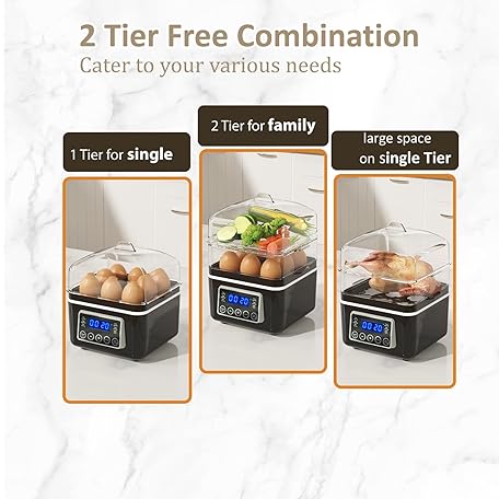 Thông tin sản phẩm 2 Tiers Electric Food Steamer for Cooking, 4 QT Digital Multi Vegetable Steamer with BPA-Free Stackable Baskets, Rapid Egg Cooker Egg Steamer with Auto Shut-Off, Ideal for Veggies, Seafood, Rice