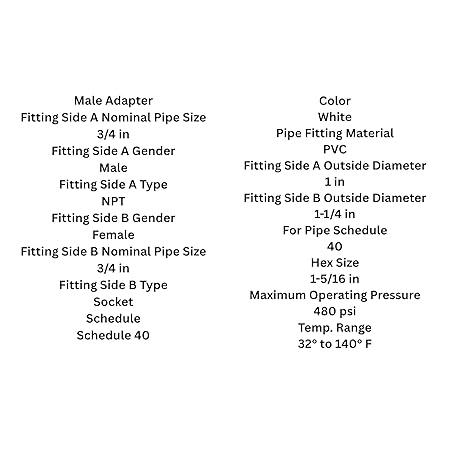 (20 PACK) Male Adapter: 3/4 in x 3/4 in PVC Fitting Pipe Size, Schedule 40, Male NPT x Female Socket, 480 psi Plumbing and HVAC Connectors Quality Fittings.