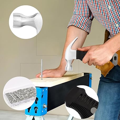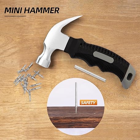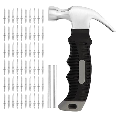 200 Pcs Double Head Skirting Nails with Mini Claw Hammer Set with 4 Tools - Invisible Seamless Baseboard Screws for Solid Wood Trim, Double-Sided Installation