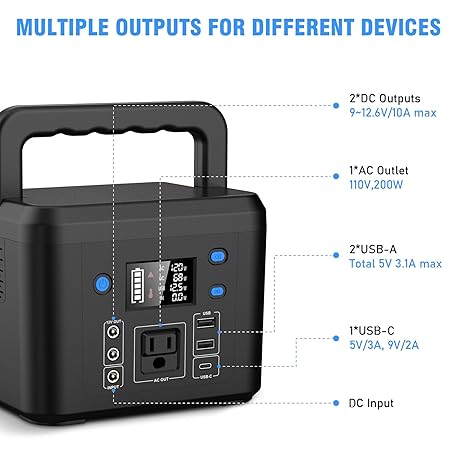 Thông tin sản phẩm 200W Portable Power Station, Powkey 120Wh/33,000mAh Power Bank with AC Outlet, 110V 6 Outputs Solar Generator External Battery Pack with LED Light for Home Use and Outdoor Camping