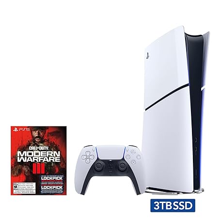 Sản phẩm 2023 New PlayStation 5 Slim Upgraded 3TB Disc Edition Call of Duty Modern Warfare III Bundle and Controller Charger - White, Slim PS5 3TB PCIe SSD Gaming Console đang được bán với giá ưu đãi là 0 tại nước Mỹ.