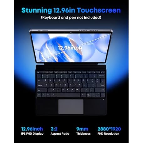 Thông tin sản phẩm 2025 CHUWI Hi10 Max Windows 11 Tablet 12.96", 512GB SSD 12GB LPDDR5, Intel N150(up to 3.6GHz), IPS FHD 3K Touchscreen Tablets, WiFi 6, Bluetooth 5.2, 8MP AF Camera, HDMI, USB 3.2, Type-C, with Case