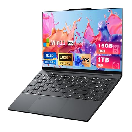 2025 Laptop, 15.6 inch Laptops with N150 Processor(Beat to i3-1115G4, up to 3.6GHz), Gaming Laptop 16GB RAM 1TB SSD, Laptops Computer Metal Shell, Fingerprint Unlock, MINI HDMI 100W Webcam Numpad