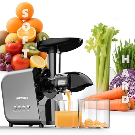 2025 LUFVEBUT Slow Cold Press Juicer with Reverse Function, Masticating Juicer Machines or Soft & Hard Vegetable Fruit High Juice Yield, Easy to Clean 250W High Power BPA-Free Dishwasher Safe