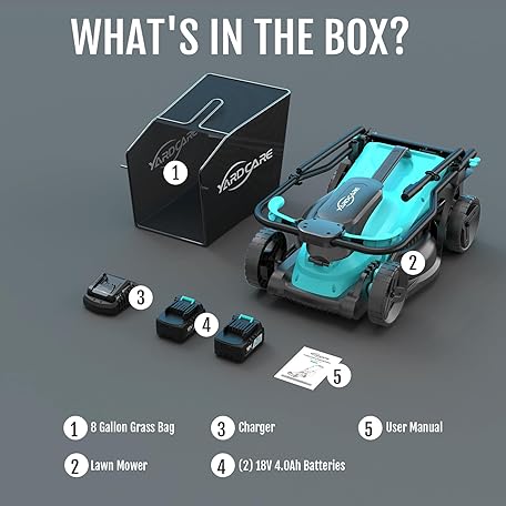 Thông tin sản phẩm (2025 Model) YARDCARE 36V Brushless Cordless Lawn Mower with 2X4.0Ah Batteries, LED Display Screen, Electric Lawnmower with 5-Position Height Adjustment, 8 Gallon Grass Bag, Charger