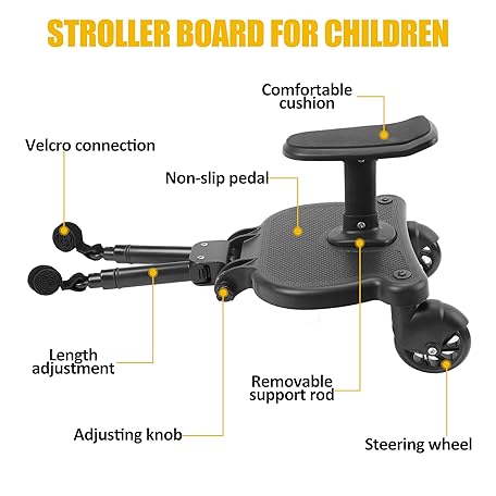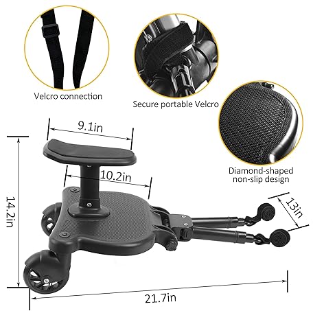 Thông tin sản phẩm 2025 New-Universal Stroller Board with Detachable Seat, 2in1 Sit and Stand Stroller Glider Board for Most Strollers, Holds Children Up to 55 LBs Stroller Standing Board (Black)