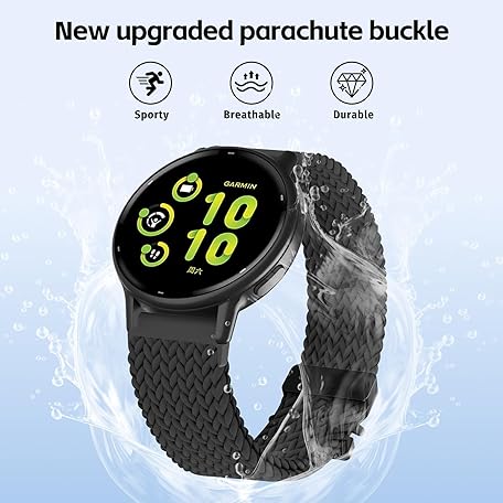 Thông tin sản phẩm 20mm Stretchy Braided Nylon Compatible with Garmin Forerunner 165 Watch Band/55/245/645, Parachute Buckle Elastic Soft Sport Strap for Vivoactive 6/5/3/3 Music & Venu Sq 2 Women Men