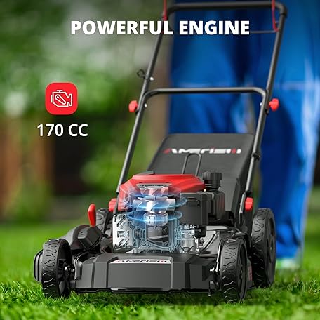 21" Steel Deck Self-Propelled Lawn Mower, 170cc OHV Engine with Forced Air-Cooling System, 3-in-1 Mulching, Rear Bag & Discharge, 6 Adjustable Cutting Height(1.5" to 3.9"), Easy Assembly & Maintenance