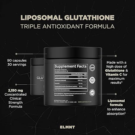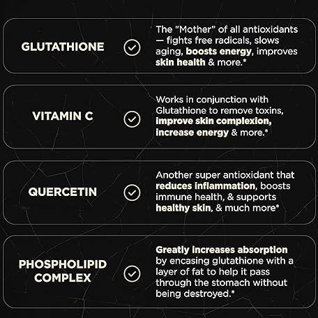 Thông tin sản phẩm 2150mg Super Liposomal Glutathione Supplement w. Vitamin C, Quercetin & Pure L Glutathione 2000mg Triple Action Formula Glutathione Liposomal Supplement w. Phospholipid Layer - 90 Pills, Non-GMO