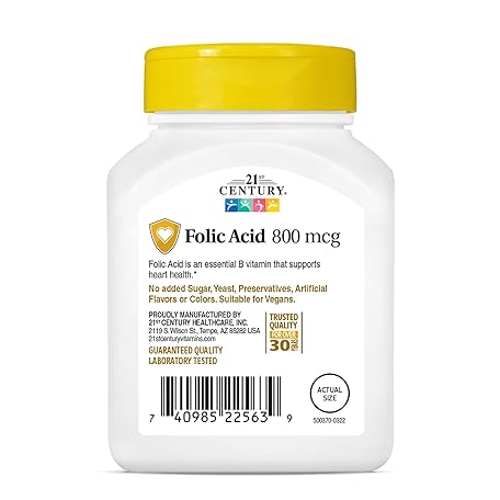 Sản phẩm 21st Century 800 mcg Folic Acid Tablets, Assorted, 180 Count đang được bán với giá ưu đãi là $4.578 tại nước Mỹ.