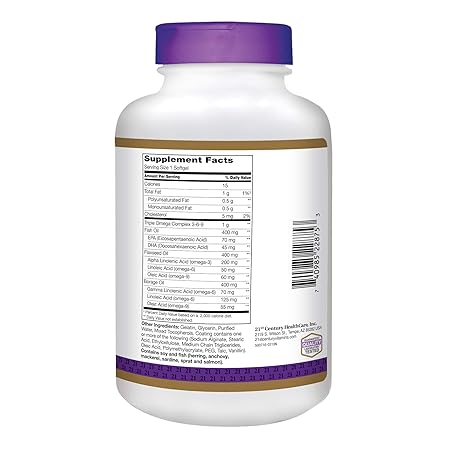 21st Century Dietary Supplement Triple Omega Complex 3-6-9, Enteric Coated Softgels, 180 softgels
