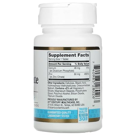 Sản phẩm 21st Century Healthcare Zinc Citrate Tablets 50mg, 60 Count đang được bán với giá ưu đãi là $3.27 tại nước Mỹ.