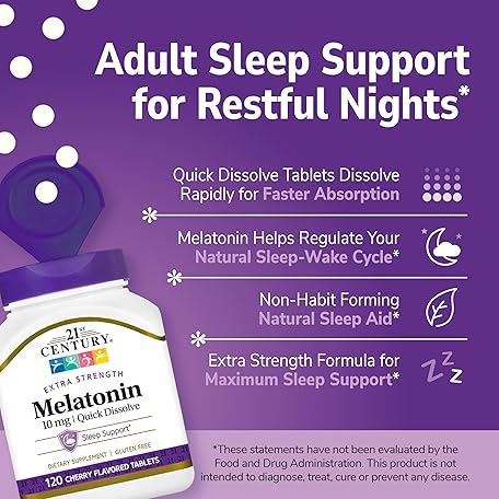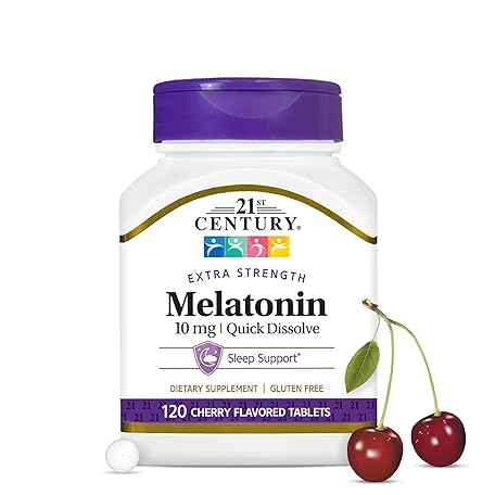 Thông tin sản phẩm 21st Century, Melatonin Quick Dissolve Tablets 10 mg, White, Cherry, 120 Count