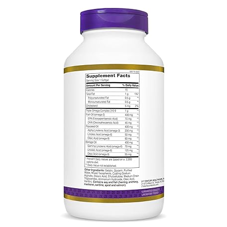Sản phẩm 21st Century Triple Omega Complex 3 6 9 Enteric Coated Softgels, 180 Count Bottle (22875) đang được bán với giá ưu đãi là $23.9691 tại nước Mỹ.