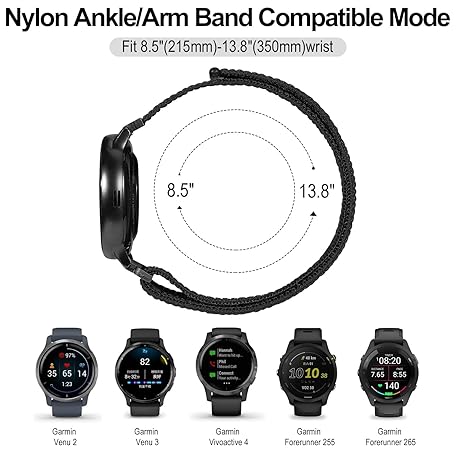 Thông tin sản phẩm 22mm Sport Ankle/Arm Band Compatible with Amazfit Helio, Quick Release Breathable Nylon Bicep Strap Replacement for Garmin Venu 3/Venu 4 45mm/Venu 2/Vivoactive 4 & Forerunner 570-47mm/265/255