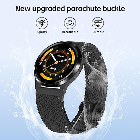 22mm Stretchy Braided Nylon Compatible with Garmin Vivoactive 4 Watch Band/Venu 4 45mm/Venu 3/Venu 2, Parachute Buckle Elastic Soft Sport Strap for Forerunner 265/255/255 Music Men Women