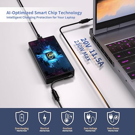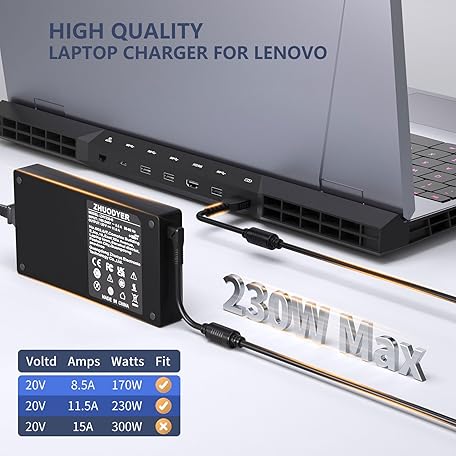 • 230W Laptop Charger Slim AC Adapter Compatible with Lenovo Legion 5 5P 7 C7 S7 Y540 Y545 Y740 Y730 Y900 Y910 Y920 Y7000, for Thinkpad P1 P73 P53 P72 P52 P71 P51 P70 P17 Laptop Power Supply Adapter