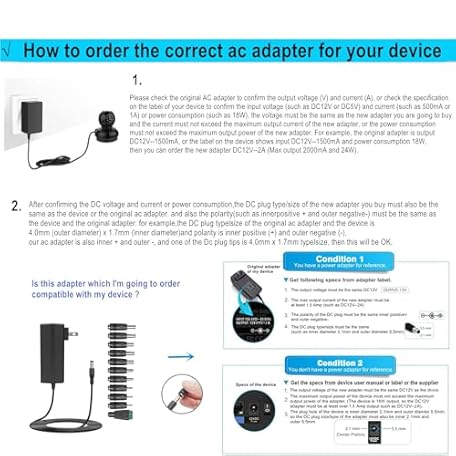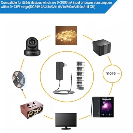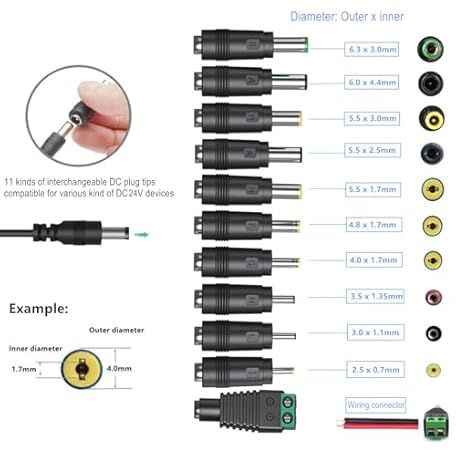 24V AC adapter 3A 2A 1A all compatible DC24V power supply with 11 changeable plug tips AC to DC 24Volts 3Amps 2.5A 1.5A 500mA 100mA power adapter 24v converter inverter transformer charger replacement