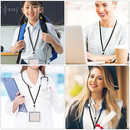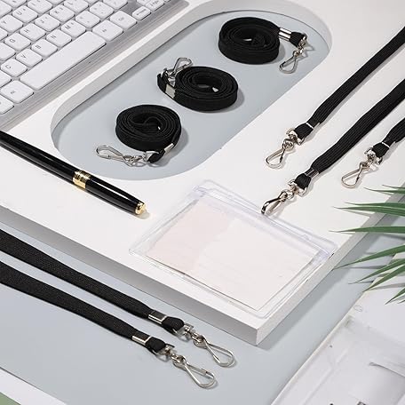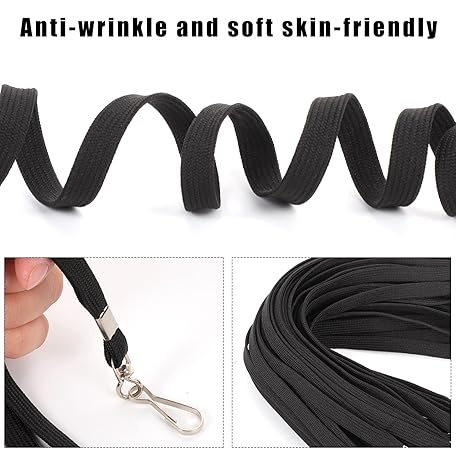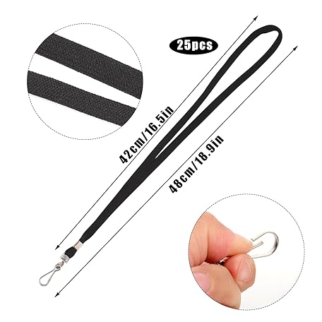 • 25 Pack Black Lanyard Bulk Lanyards for Id Badges Flat Lanyard with Badge Clip Swivel Hook