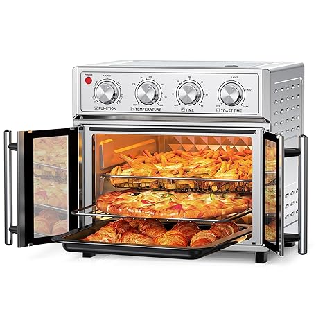 27.5QT French Door Air Fryer Toaster Oven Combo, Countertop Oven for 4 to 6 Family, Stainless Steel Large Toaster Oven for Baking, Roasting, Includes Accessories,Stainless Steel