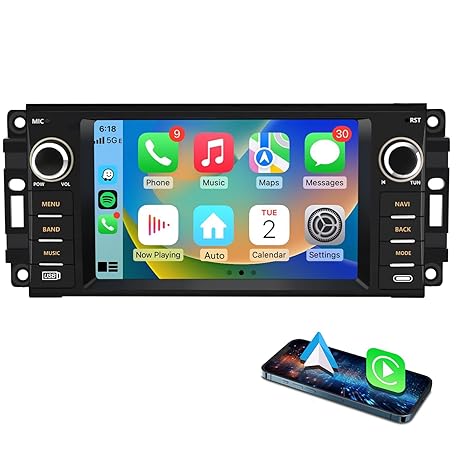 • [2GB+64GB] Car Stereo for Jeep Wrangler JK 2007-2018 Dodge Ram 1500 2008-2012, Touch Screen Carplay Radio with WiFi GPS AM FM CarPlay Android Auto