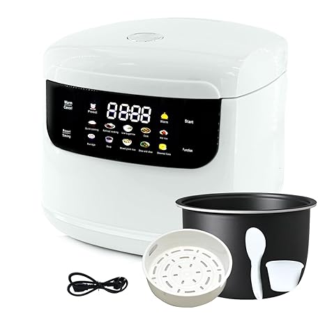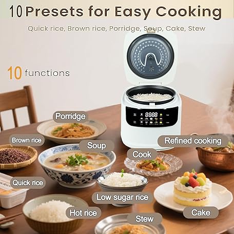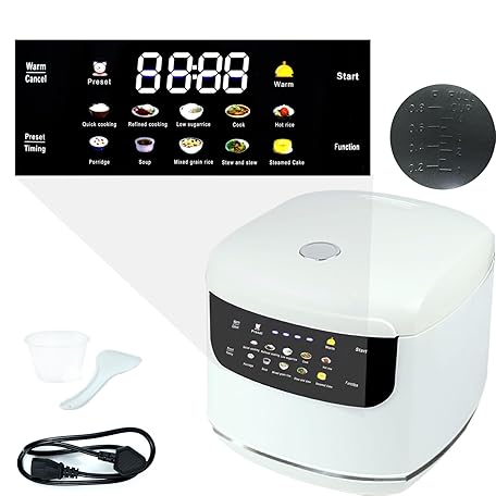Thông tin sản phẩm 2L Mini Protable Rice Cooker,5 Cups Cooked/3 Cups Uncooked, 400W Non-Stick Rice Maker, 24 hours Timer Delay, 10 Functions, Fast Cooker,White