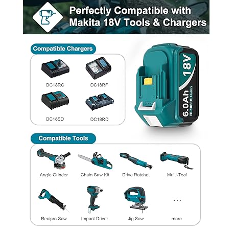Thông tin sản phẩm 2Pack 18-Volt Replace for Makita 18V Battery BL1860B, Replacement Batteries Compatible with Makita BL1860 BL1820 1830B 1840B 1850B, Fit with Original makita 18V Battery Chargers