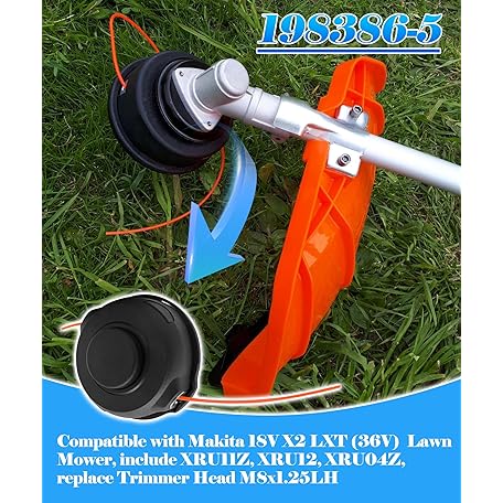 Thông tin sản phẩm 2Pcs 198386-5 Bump & Feed Trimmer Head Compatible with Makita Lawn Mower XRU11Z, XRU12, XRU04Z, Replace Trimmer Head M8 x 1.25LH