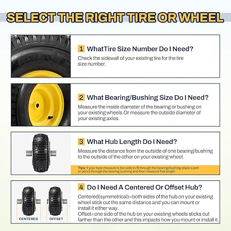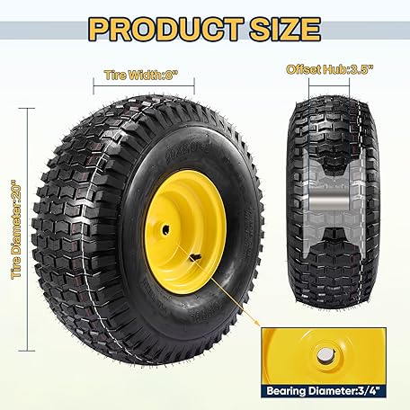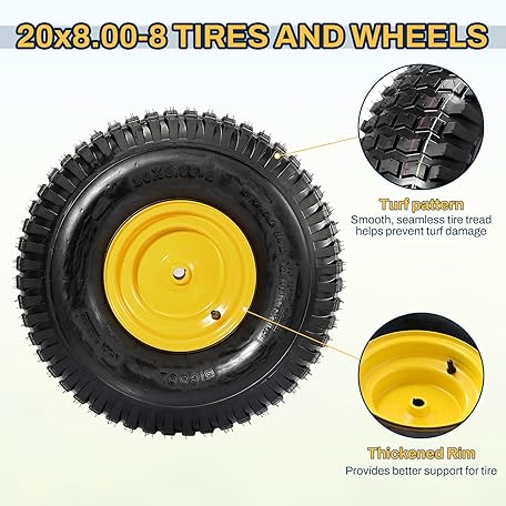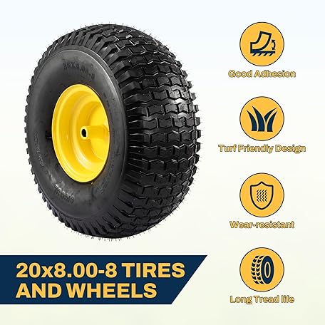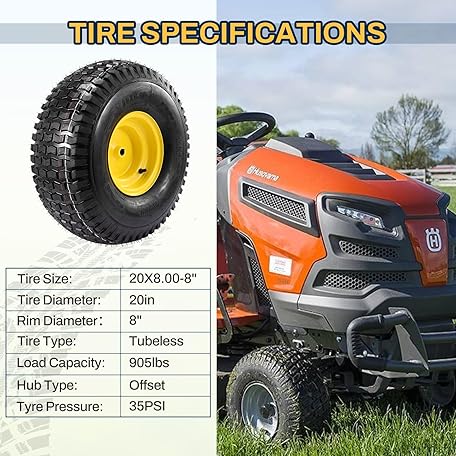 Thông tin sản phẩm 2PCS 20x8.00-8 Rear Tire and Wheel Assemblies, 3/4" Borehole, 3.5" Offset Hub and 3/16" Keyway, 4 Ply Tubeless Tire Compatible with Riding Lawn Mowers