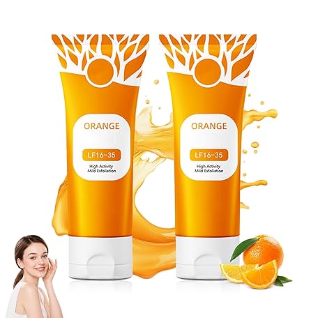 2pcs Orange Exfoliating Gel for Face & Body, Exfoliating Cleansing Gel Scrub, Deep Cleansing Moisturizing Facial Exfoliator, Natural Orange Peeling Gels Face Scrub (3.38 fl oz)