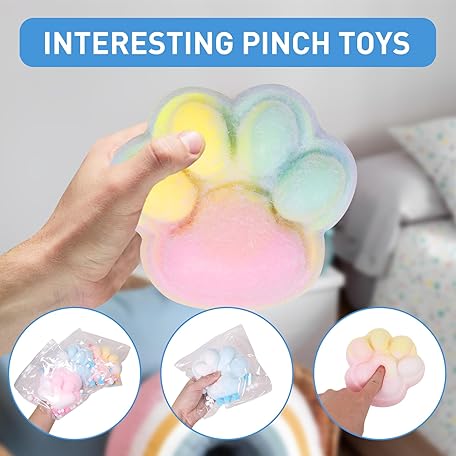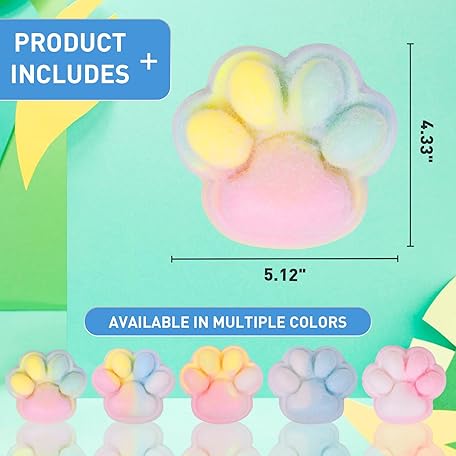 • 2pcs Rainbow Big 5in Squishy Cat Paw Squeeze Toys,Cute Kawaii Squishies,Fur Ball,Jelly Kitty Paw Squishy Funny for Adults Kids