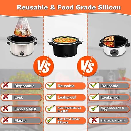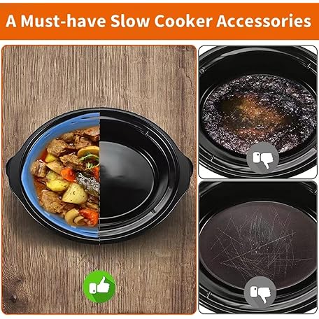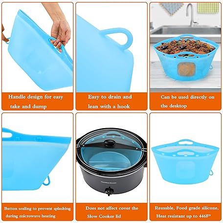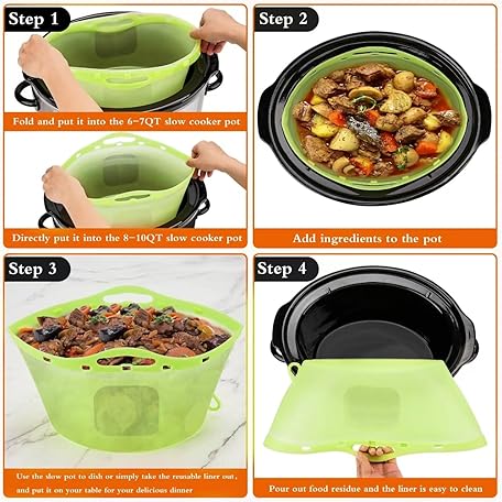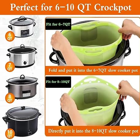 • 2pcs Silicone Slow Cooker Liners, Foldable Slow Cooker Liners for 6-7-8-10 Quarts, Reusable Crock-Pot Liners with Buttons and Hooks for Oval or Round Pot, Leakproof & Easy Clean, Green+Blue