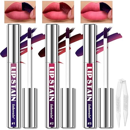 3 Colors Peel Off Lip Liner Stain, High Pigmented Long Wear Waterproof Magic Lip Stain Tattoo, Natural Matte Finish Lip Tint Pink Lip Gloss Set for Women, Non-Sticky Liquid Lipstick Lip Makeup
