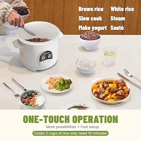 Thông tin sản phẩm 3-Cup Uncooked Rice Cooker Small & Food Steamer - Ceramic Coating Non-Toxic Inner Pot, One-Touch Multifunction for Rice/Sauté/Yogurt, Dishwasher Safe, 1-3 People Size, White
