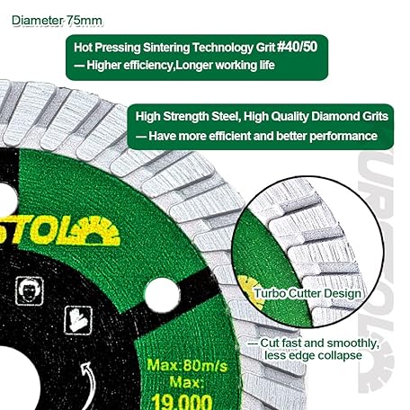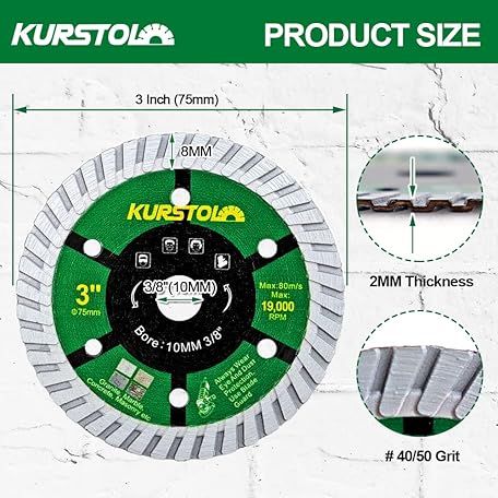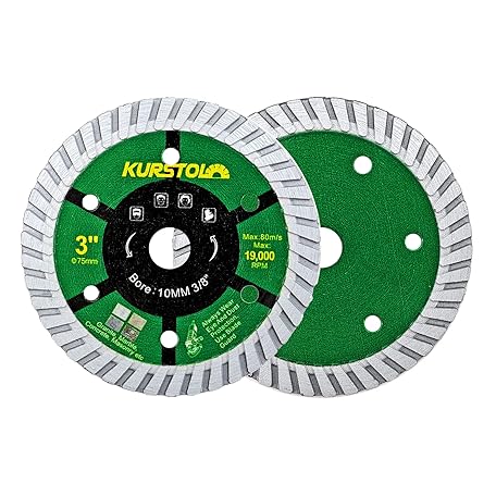 • 3" Granite Diamond Blade - 2pcs 75mm Concrete Cutting Disc for Marble Masonry Natural Stone Angle Grinder Saw Blade with Arbor 3/8"(10mm)