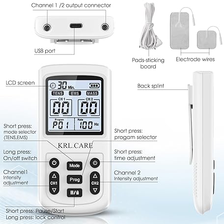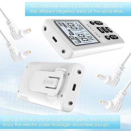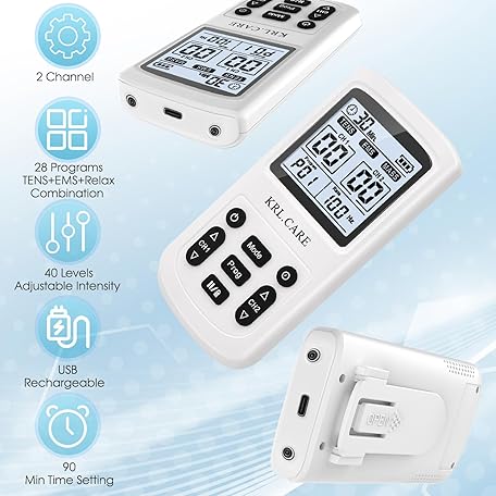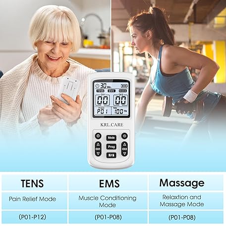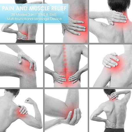 • 3-in-1 TENS Unit Muscle Stimulator, EMS Massage Machine with 40 Intensities for Gradual Shoulder, Sciatica, Back Pain Relief, Muscle Recovery, 28 Modes Portable Dual Channel with 8 Electrodes Pads