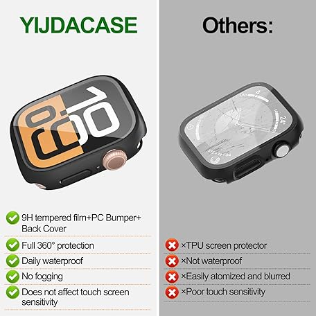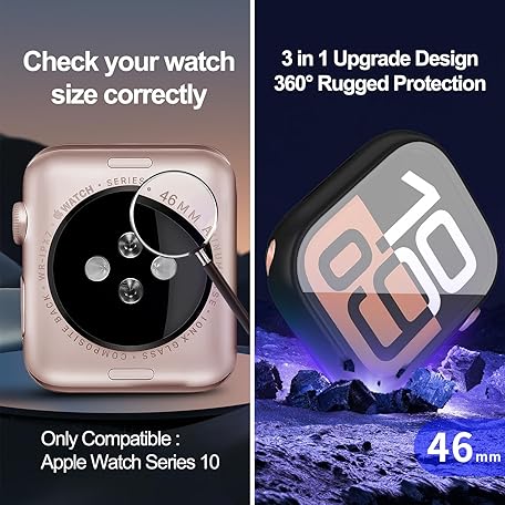 3 in 1 Waterproof Case for Apple Watch Screen Protector 46mm Series 10/Series 11,with Tempered Glass,[360° Protective Front and Back] PC Bumper Face Cover Compatible iWatch Accessories